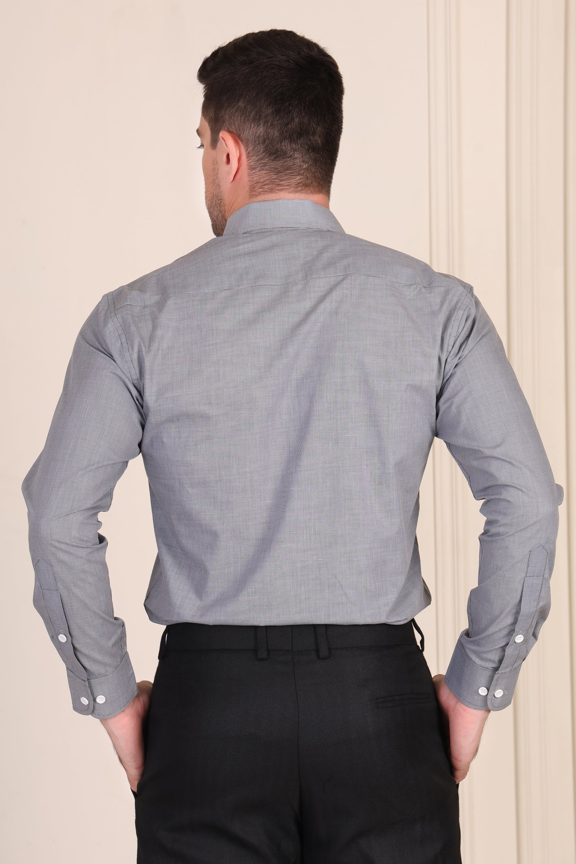 Crafted from a premium cotton-viscose blend, the fabric combines softness, breathability, and structure, ensuring a sharp look throughout the day. The micro pinstripe pattern in grey adds subtle sophistication, while the white contrast collar and cuffs bring a touch of European refinement — perfect for formal occasions, business meetings, or evening events.
