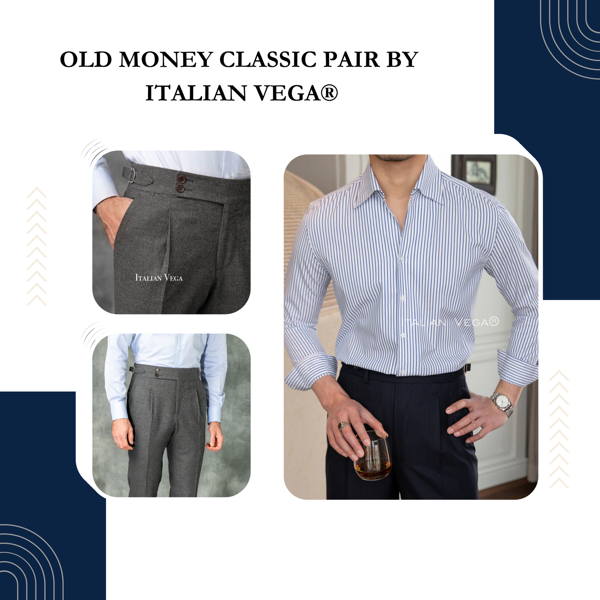 Step into timeless elegance with Italian Vega's signature pairing of Italian-style shirts and Gurkha pants. Perfectly embodying the "old money" aesthetic, our pieces are designed for those who appreciate understated luxury and impeccable craftsmanship.