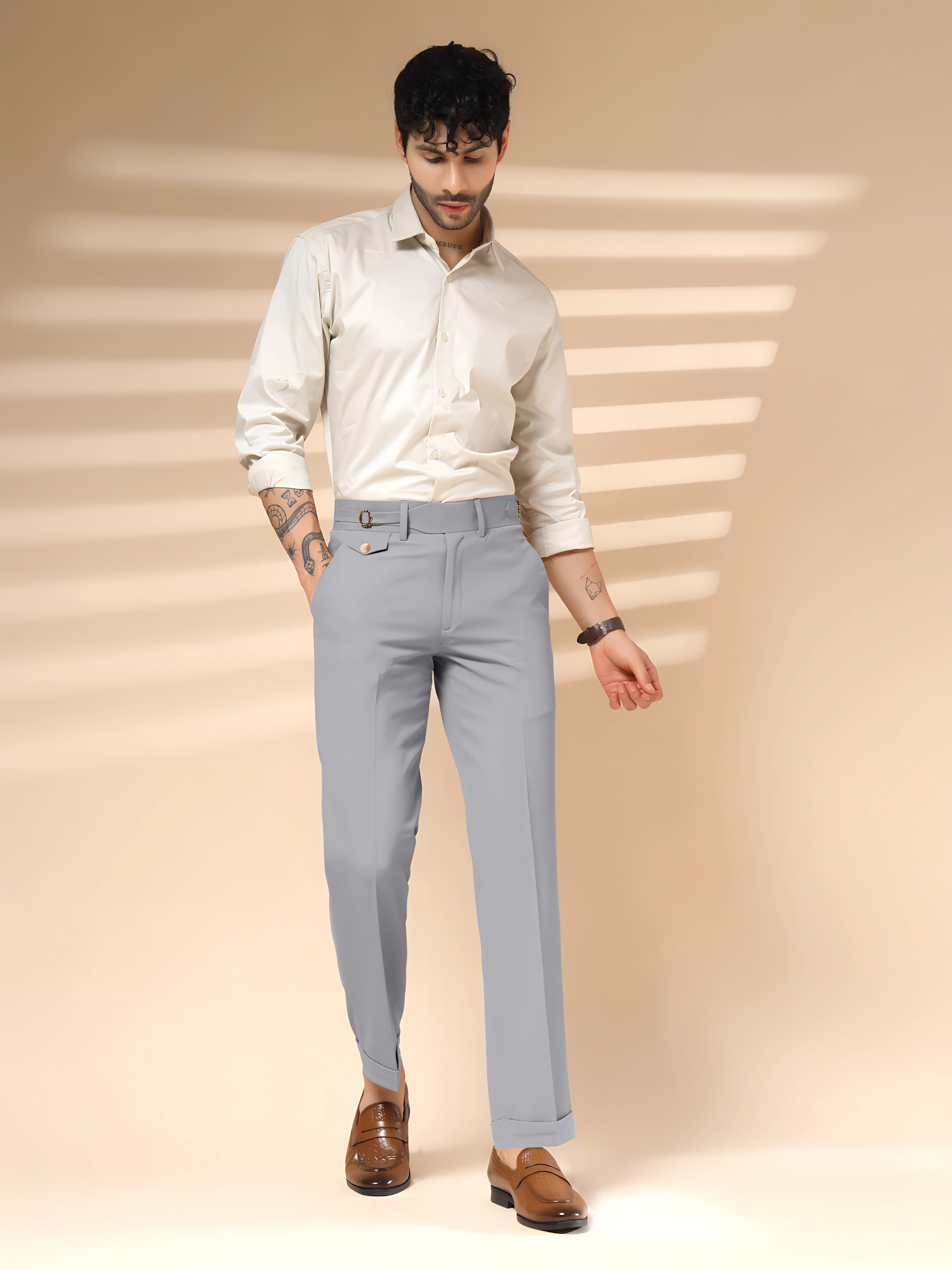 Ash Grey Single Buckle Gurkha Pants by ITALIAN VEGA®