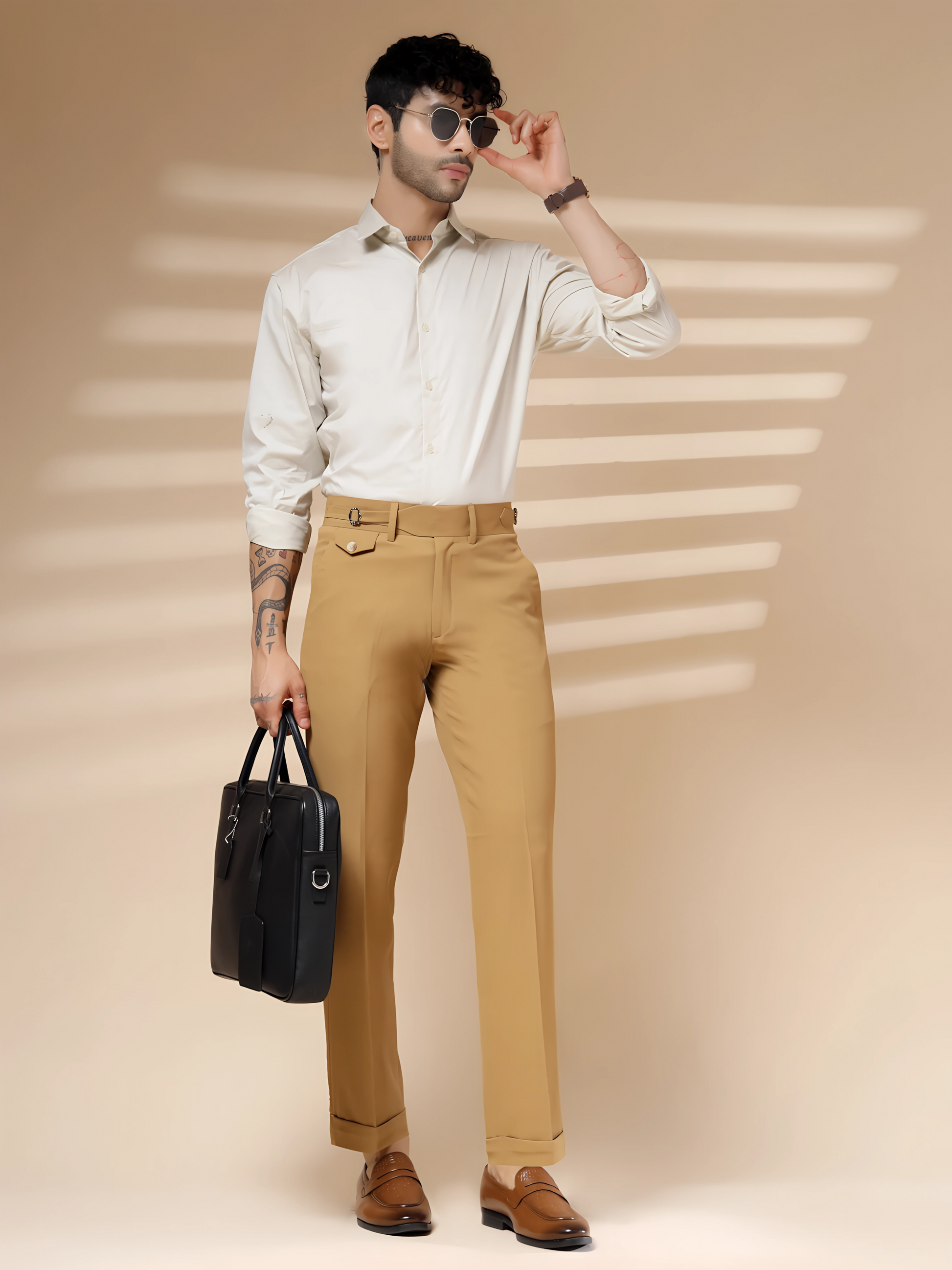 - Structured Comfort Fit – Tailored with front pleats and a gently tapered leg for a balanced, comfortable fit that flatters every silhouette. Ideal for long workdays or evening engagements where style and ease matter equally.