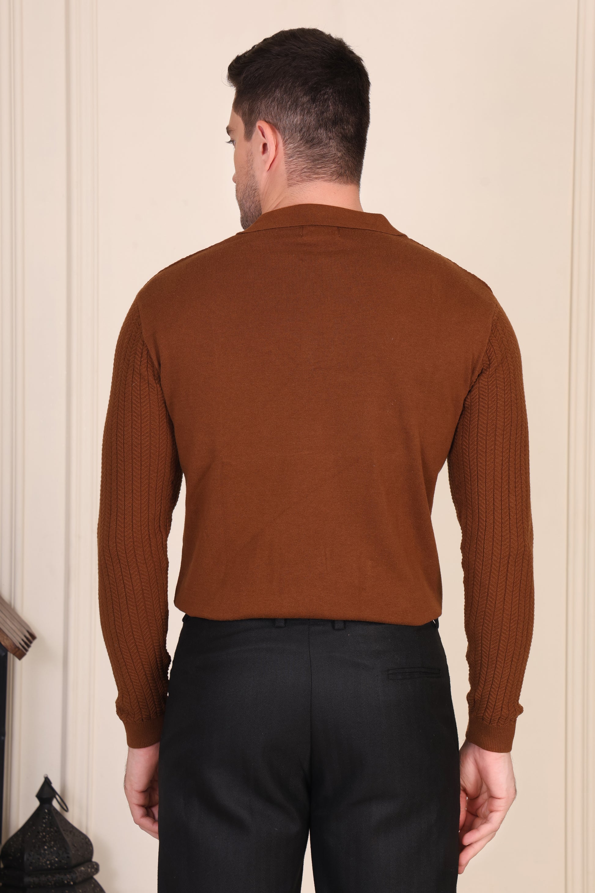 Sophistication lives in the details — and the Herringbone Brown Full Sleeves Knit Polo by ITALIANVEGA captures that perfectly.
