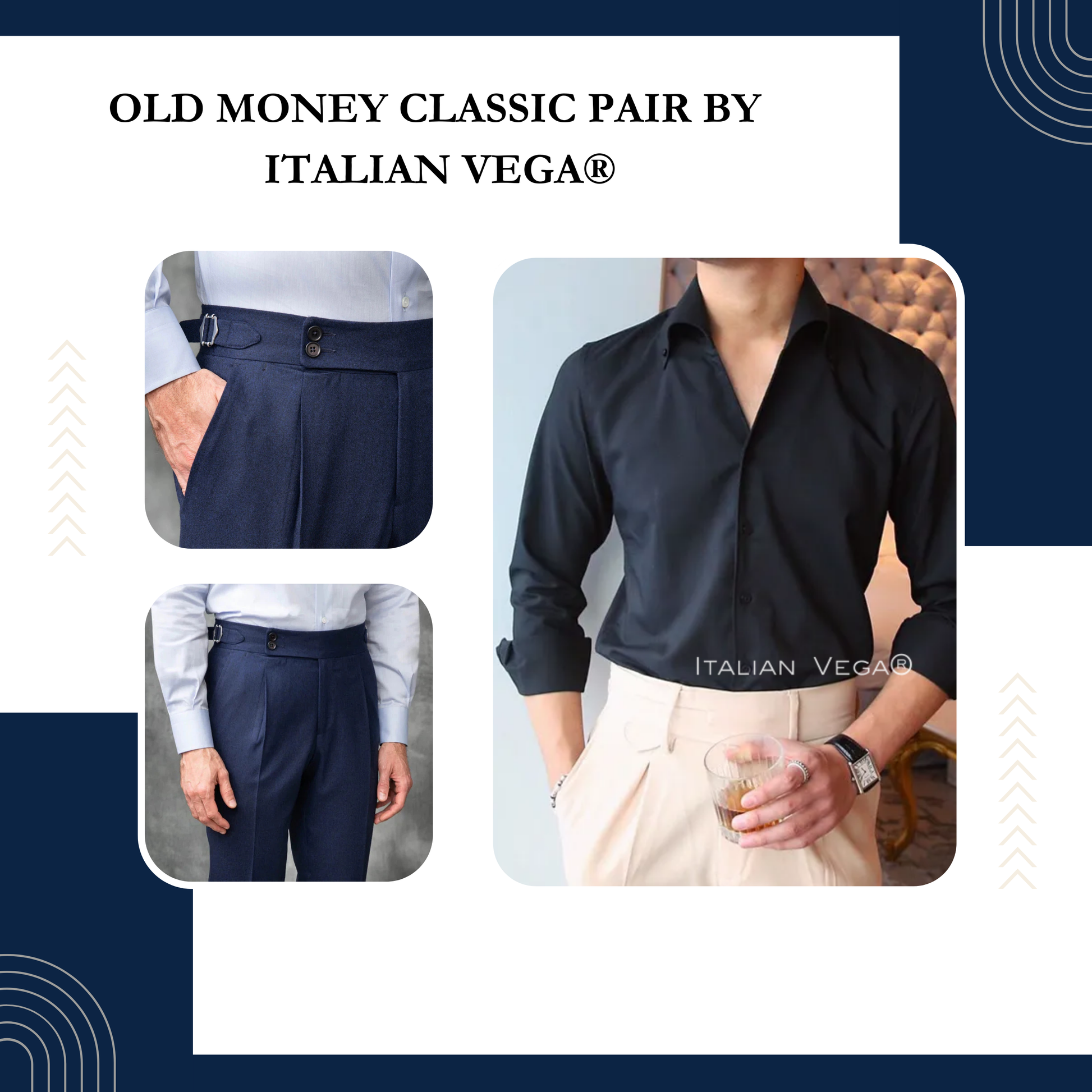 Pair them together for a seamless, polished look that captures the essence of timeless wealth and refinement. With Italian Vega, you're not just wearing clothes – you're making a statement of enduring sophistication.