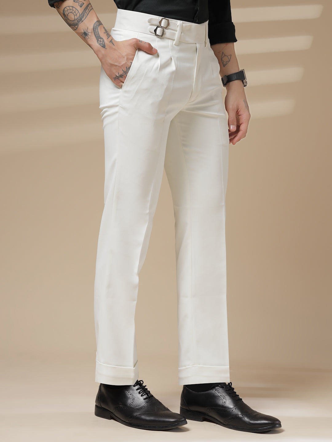 White Double Buckle Formal Gurkha Pants by ITALIAN VEGA®